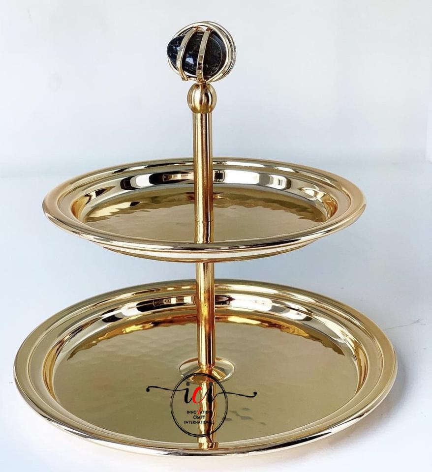 Luxury Nikil Finished Textured Glass Table Ware Cake Stand and Bowl With Tray Full Family for Home Restaurant Wedding Use