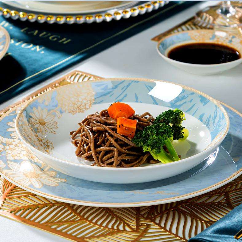 Luxury Noble Salad Pasta and Sauce Tray Porcelain Family Dinner Set With Royal Phnom Penh Wedding Design for Home Use