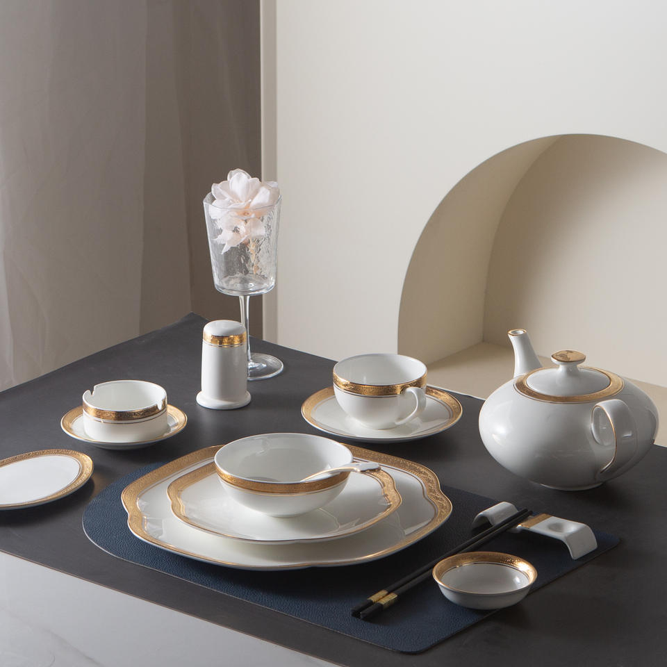 Luxury Nordic Embossed Gold Dinner Set Porcelain Bowl Dishes Plates Coffee Cup Teapot Tableware Sets