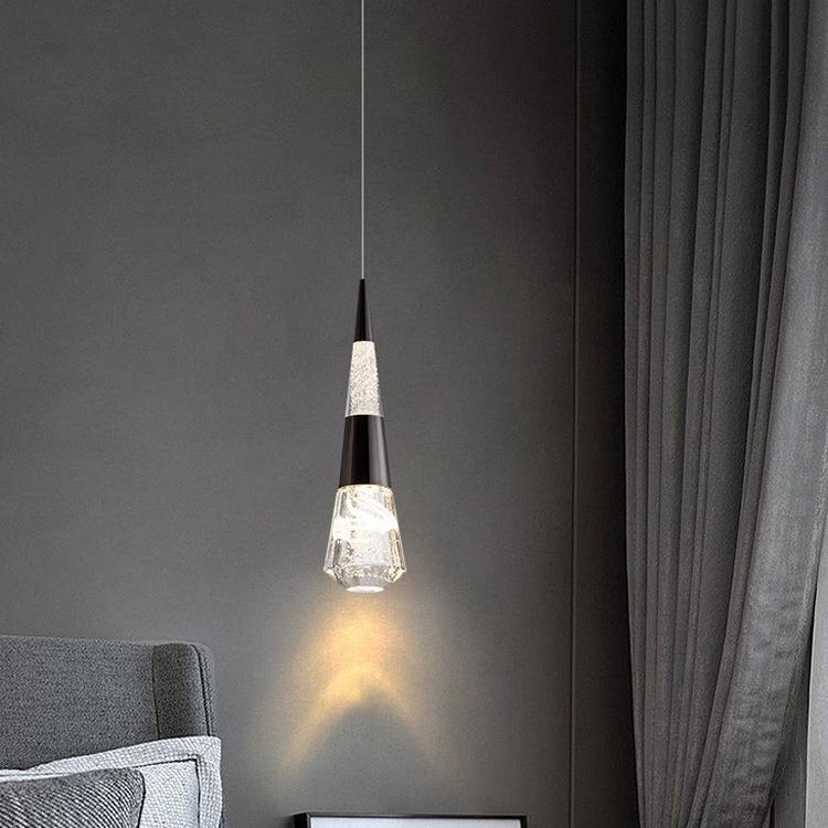 Luxury Nordic Single Head LED Crystal Hanging Light Remote Control Home Office Restaurant Bedroom Living Room Acrylic Cover