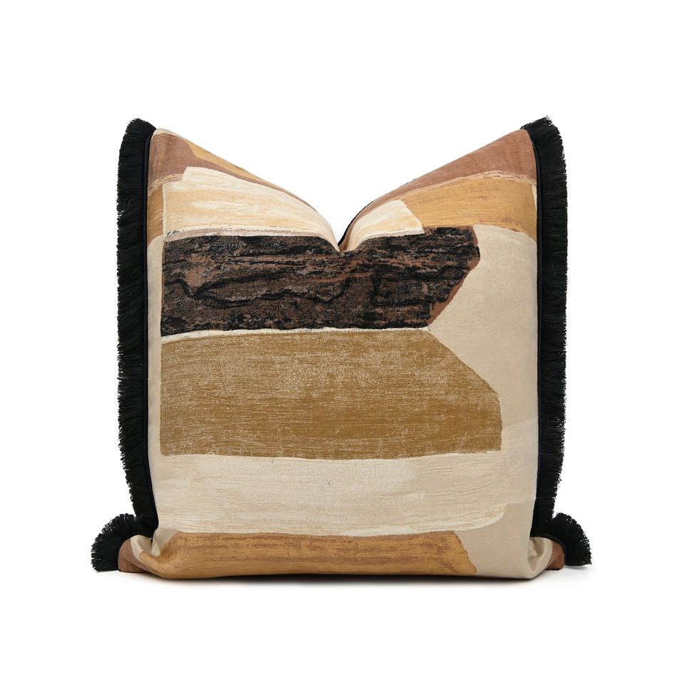 Luxury Orange Black Tassel Pillow Cushion Square Pillow with Stitched Brush Pattern for Living Room Sofa Home Decor