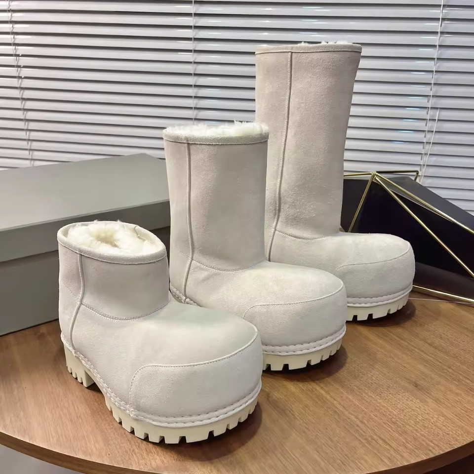 Luxury Outdoor Warm Platform Heightened Snow Boots Fashion Designer Chunky Leather soft Snow Boots Top Quality Wool Ankle Boots