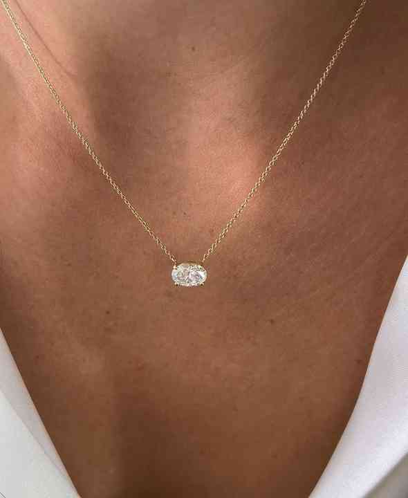 Luxury Oval Cut Lab Grown Diamond Pendant Necklace solid Gold Solitaire Chain Jewelry Wholesale