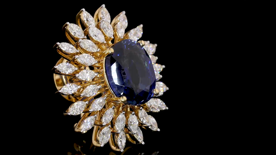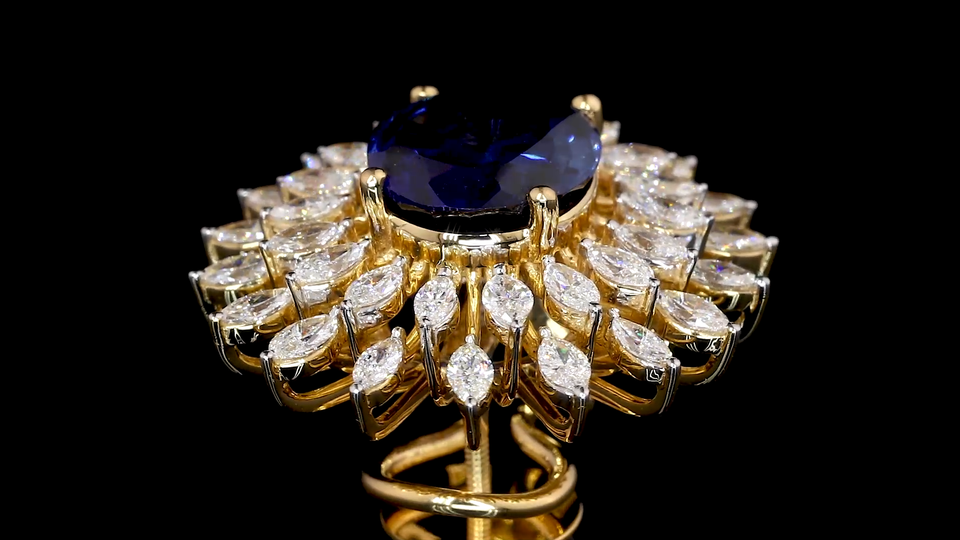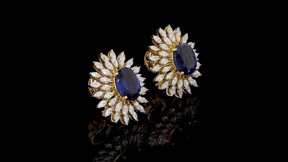 Luxury Oval Lab Blue Sapphire Earrings with Marquise Shape Lab Grown Diamond|Statement Bridal & Cocktail Jewelry|OEM ODM