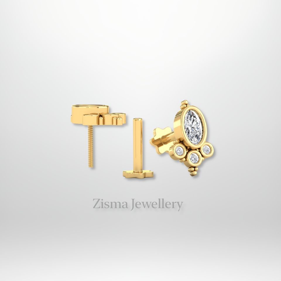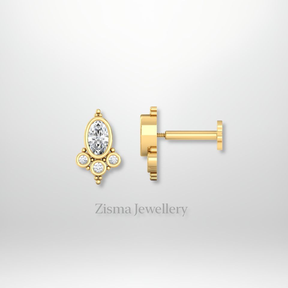Luxury Oval and Round Bezel Set Diamond Stud Earrings 14K Solid Gold IGI Certified Lab Grown Natural Diamonds Piercing Jewelry