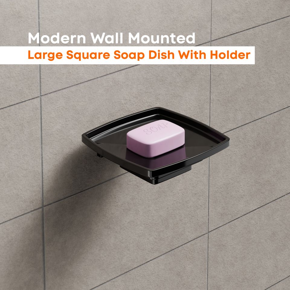 Luxury Oversized Square Glass Soap Dish with Wall Mounted Brass Holder Removable Soap Saver Tray for Master Bathroom