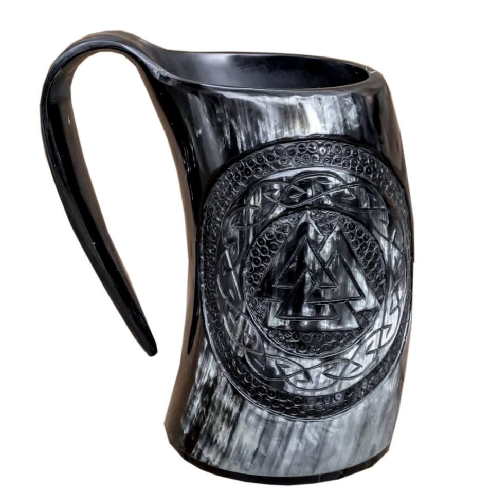 Luxury Ox Horn Tankard Handcrafted Polished Natural Grain Leak-Proof Food Safe Finish Durable Natural Shape Flower Style Laser