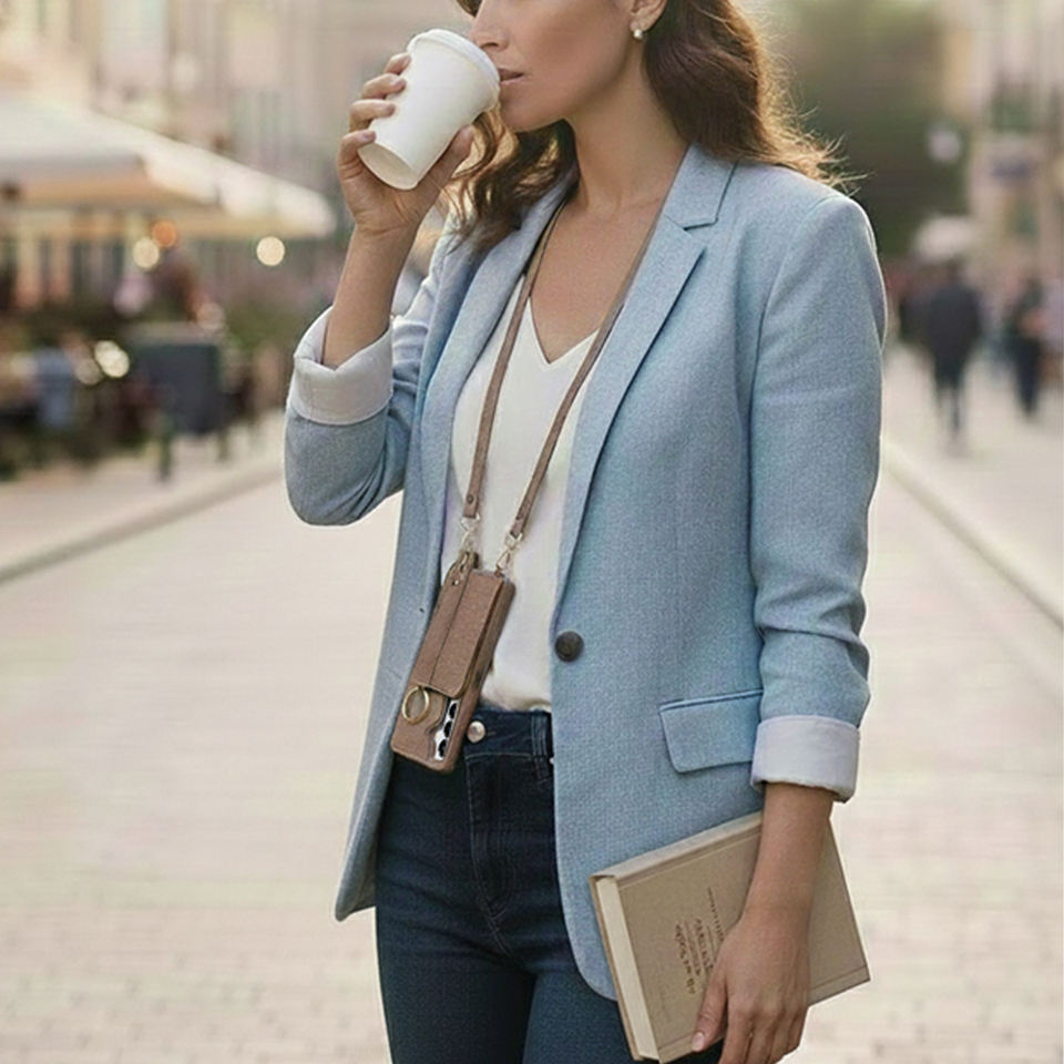 Luxury PU Leather Shoulder Strap Phone Case Wallet with Grip Stand for Samsung Galaxy