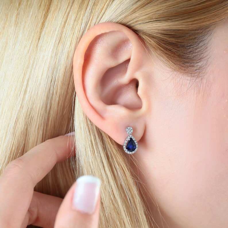 Luxury Pear Shape Natural Sapphire Drop Earring With Pear Cut Real Diamond 18k Fine Jewelry Small Women Drop Shipping OEM ODM