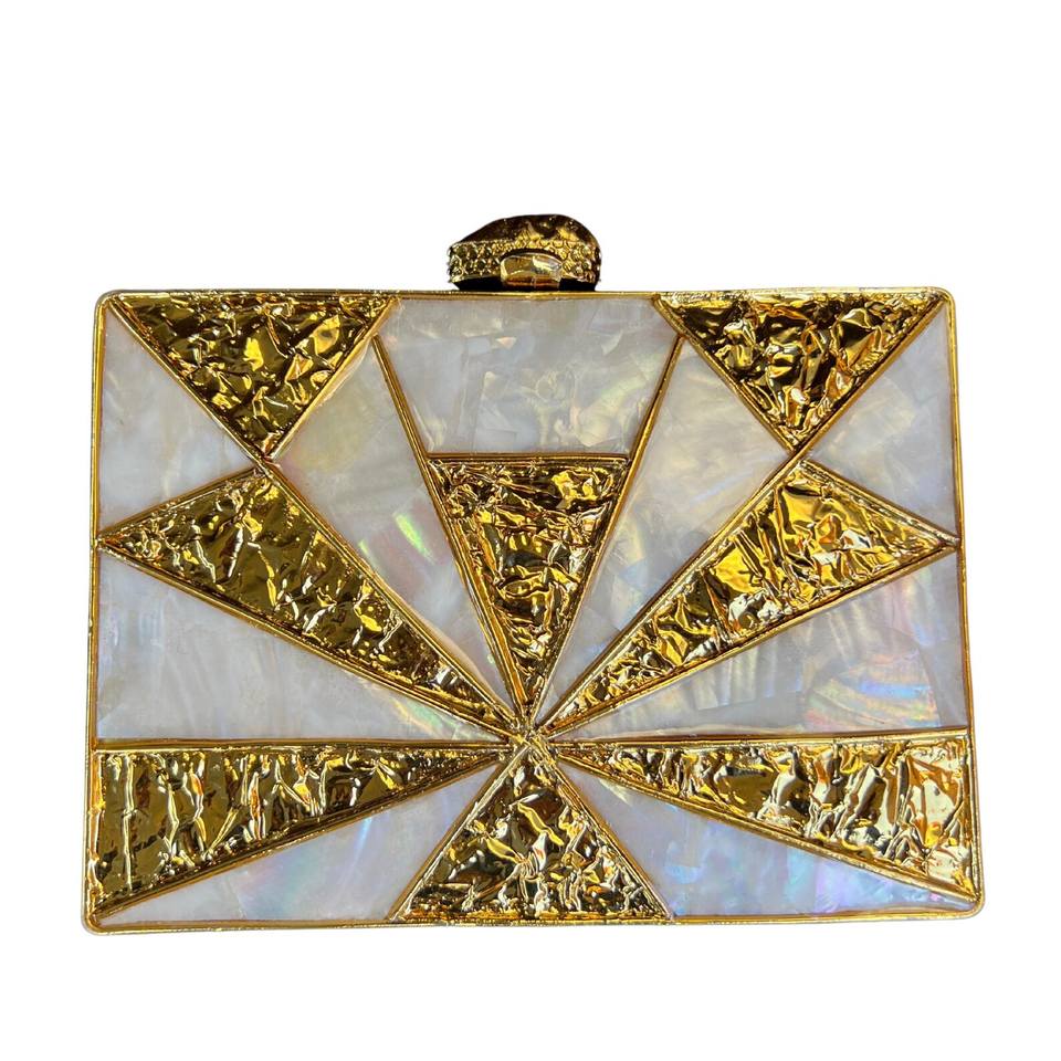 Luxury Pearl Shell Box Clutch Handcrafted Bag with Gold Hardware for Women Mother of Pearl Party Clutch with Detachable Chain