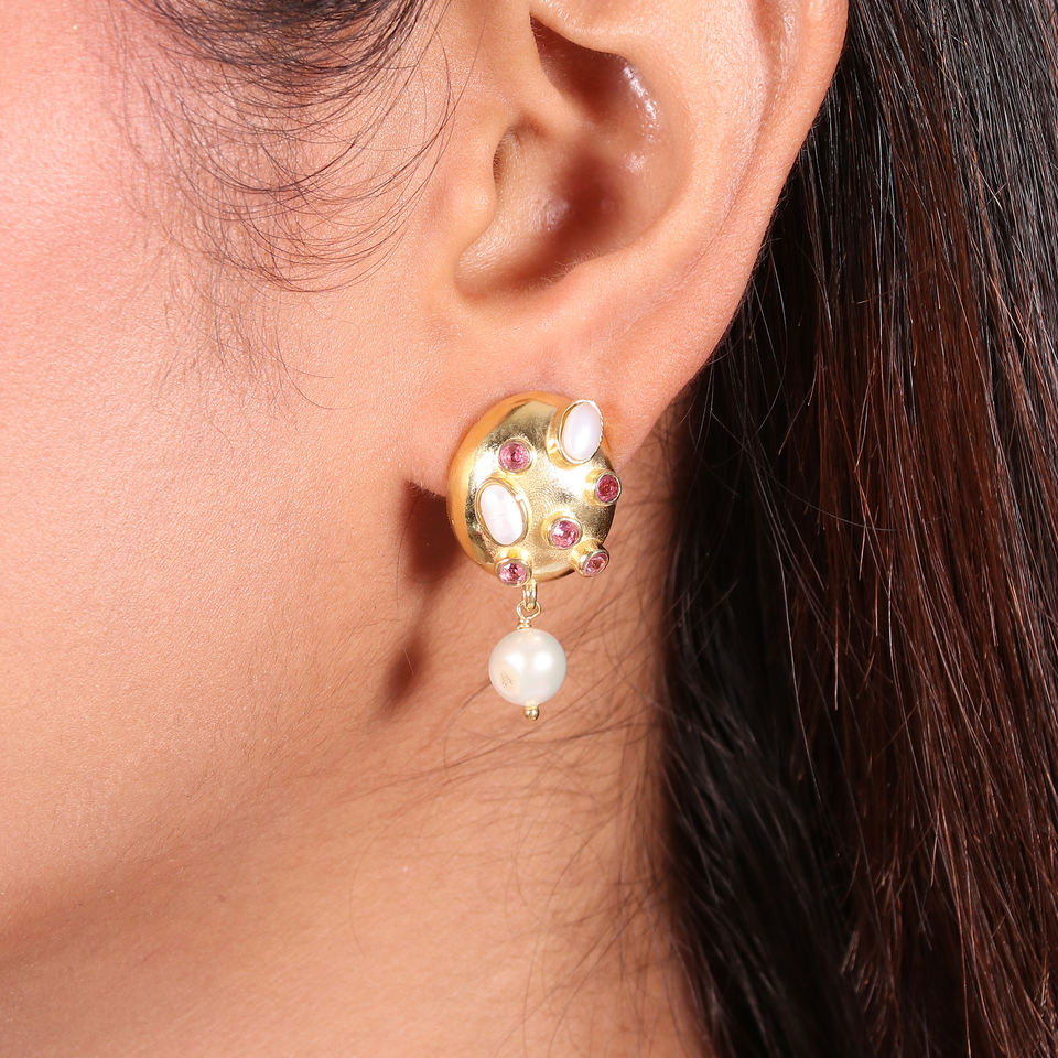 Luxury Pearl & Tourmaline Earrings Jewelry Gold Plated 925 Sterling Silver Earrings Wedding Jewelry Birthstone Jewelry Sets