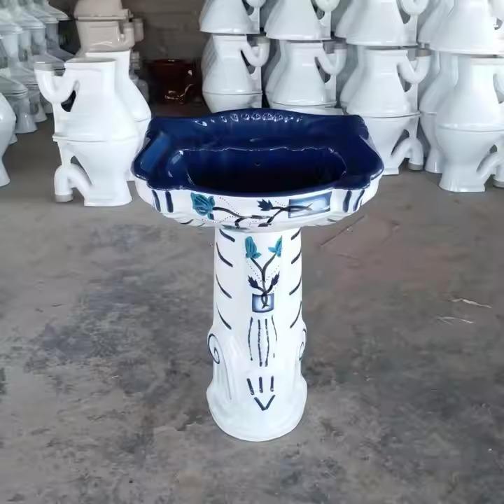 Luxury Pedestal Ceramic Sink Square Shape Modern Stand Single Pedestal Basin Big Sterling Ceramic Washbasin