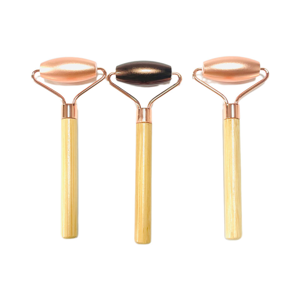 Luxury Personalized Rose Gold Face Roller Wood and Metal Anti-Aging Massage Tool with Custom Logo