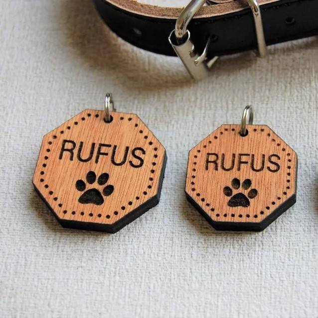 Luxury Pet Necklace Engraving Cat Collar Wooden Blank Nameplate Natural Wood Name Tag for Dog