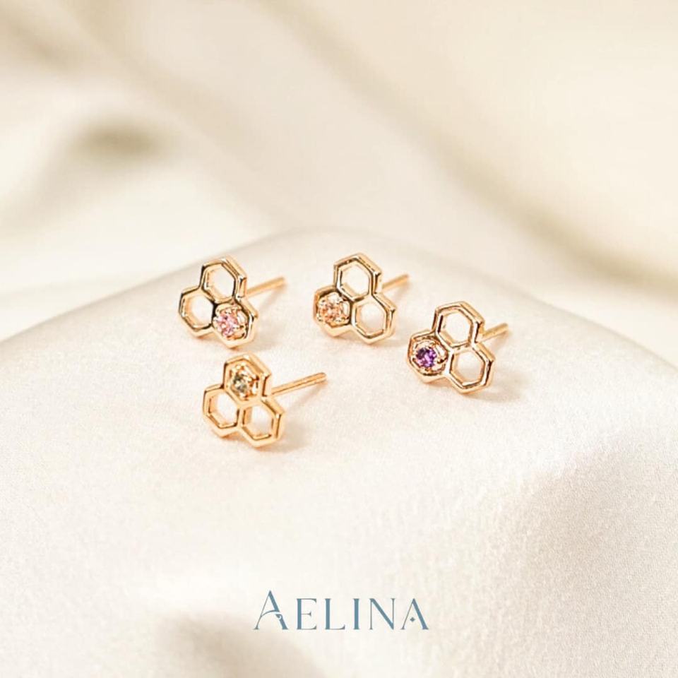 Luxury Pink Gold 9k Stud Earrings Trendy Honeycomb Design with Real Gemstones for Daily Life and Party Events