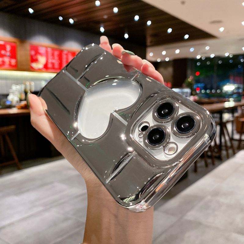 Luxury Plating 3D Hollow Love Heart Phone Case for iPhone 11 12 13 14 Pro Max Plus Camera Lens Protect Shockproof Cover Cases