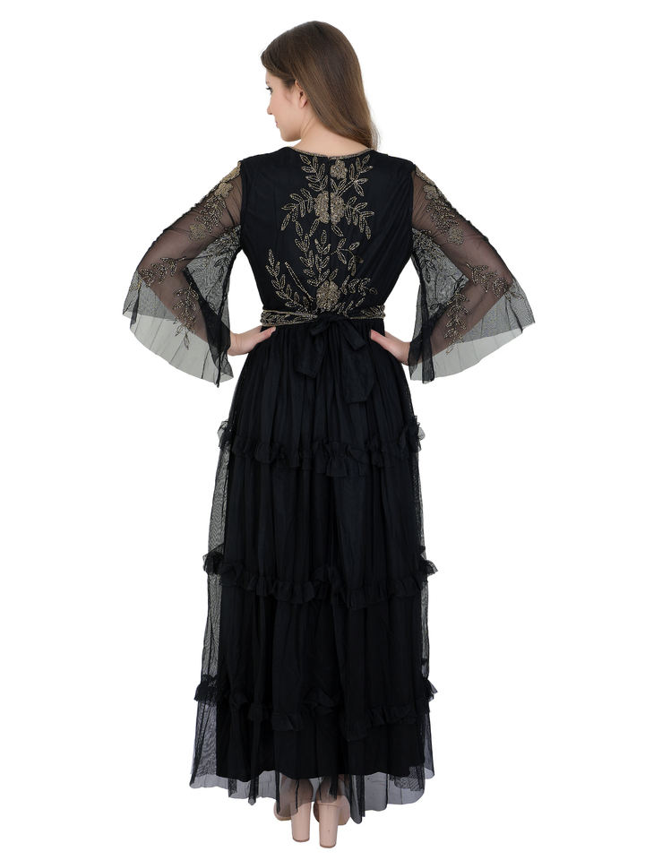 Luxury Plus Size Dresses Women Casual Elegant Women's Evening Dress Long Sleeves Flare Net Belt Style Wedding Club Party Wear