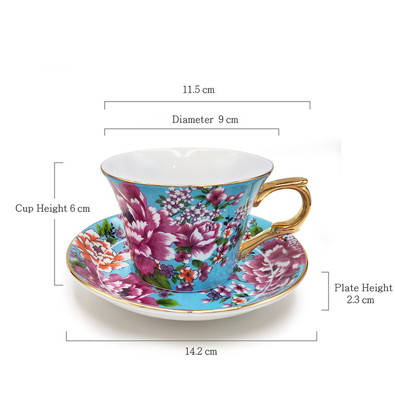 Luxury Porcelain Coffee Cup with Gold Handle Water Transfer Printed Six-color Floral Tea Cup Saucer Business Gift Set Taiwan