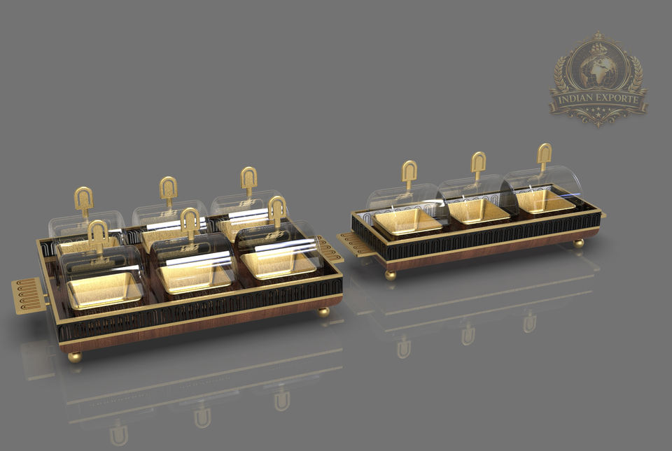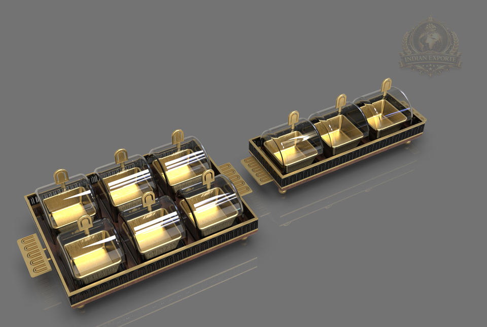 Luxury Premium Customized Design Tableware Set Gold Metal Glass Wood Eco-Friendly Home Party Use Serving Bowl Dome Candy Jar