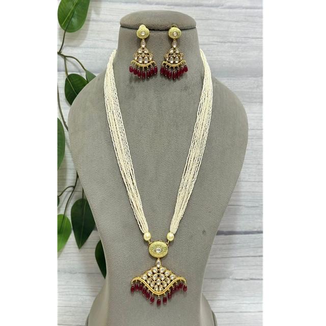 Luxury Premium Quality Moissanite Polki Kundan Pearl Pendant Necklace Set for Wedding and Party Wear for Women