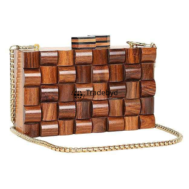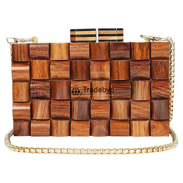 Luxury Premium Quality Wooden Clutch Bag Pearl Beading Chains for Special Occasions Handmade Fashion Accessory for Women