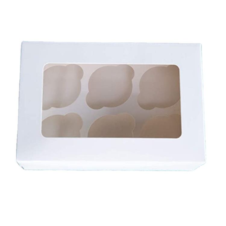 Luxury Printed Individual Cupcake Holder Box Folders Paperboard White Recycled Materials Bakery Packaging