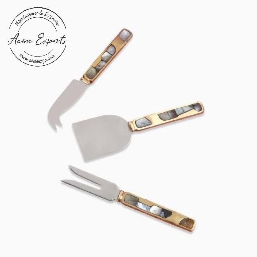 Luxury Cheese Knife Set with Mother of Pearl Inlay Handles Elegant Durable Cutlery Perfect Serving Cheese Parties and Gifting
