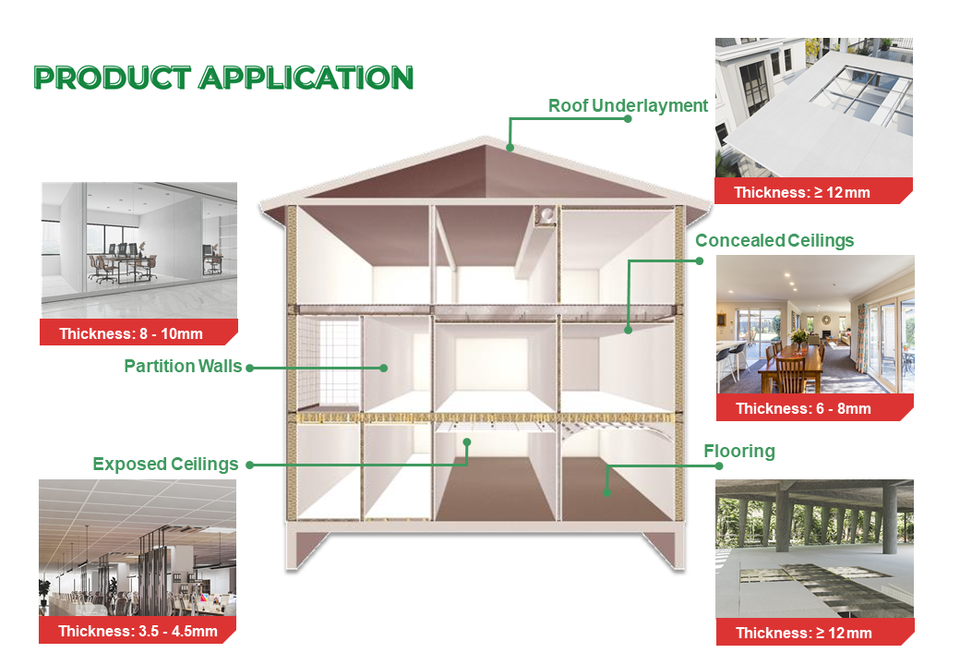 Walls, ceilings, partitions, subflooring, under roofingApplication