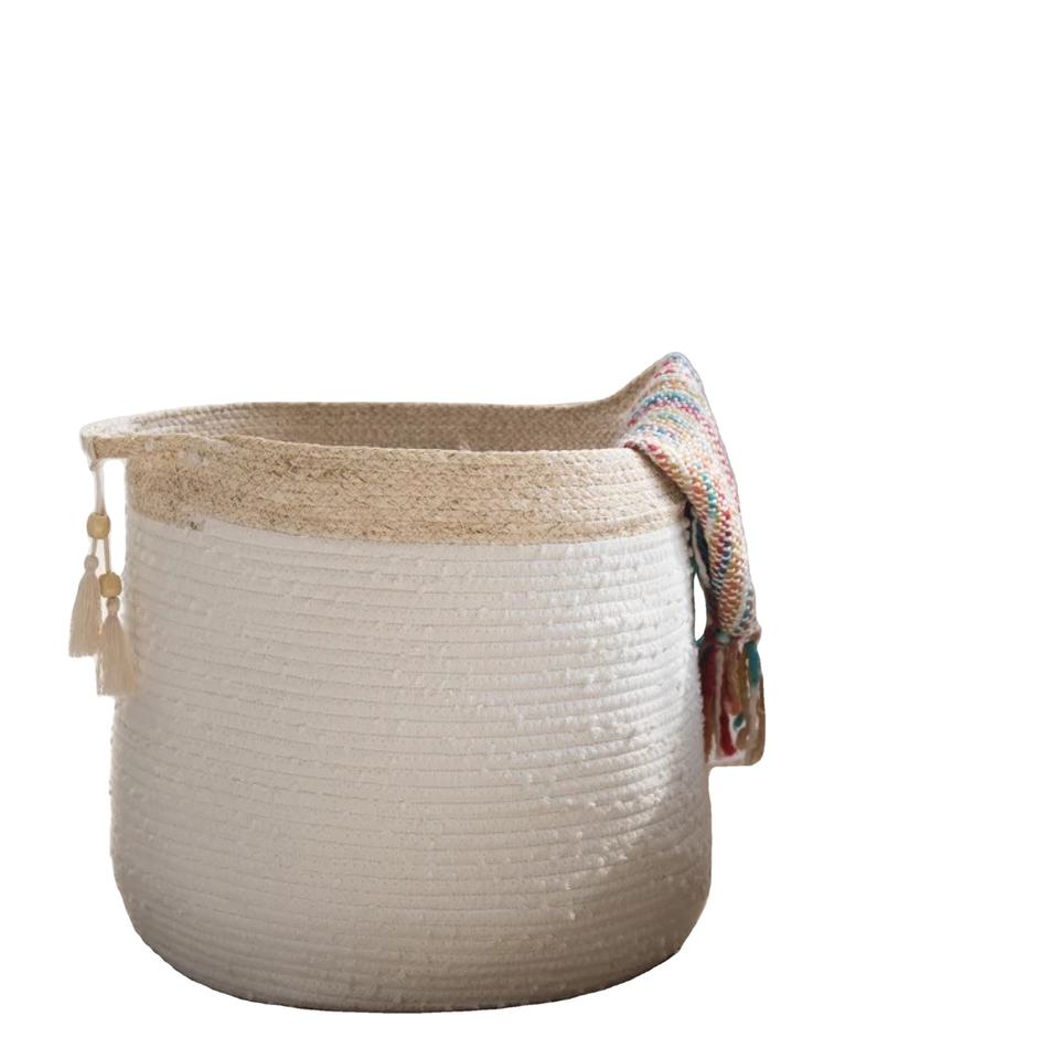 Luxury Quality Large Braided Cotton Rope White Brown Storage Basket with Handles for Living Room and Office Decoration Storage