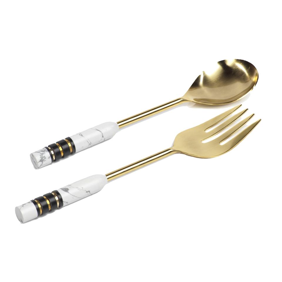 Elegant Gold Salad Spoon and Fork Set with Decorative Handles Perfect for Dining Table Kitchen Use and Gift Purpose