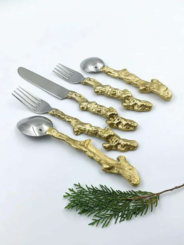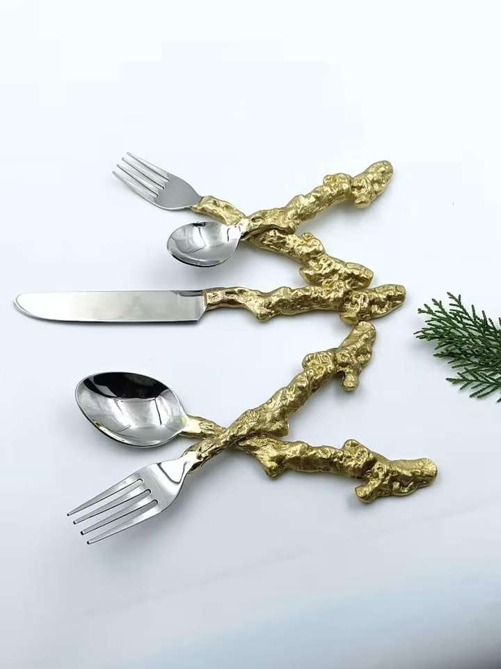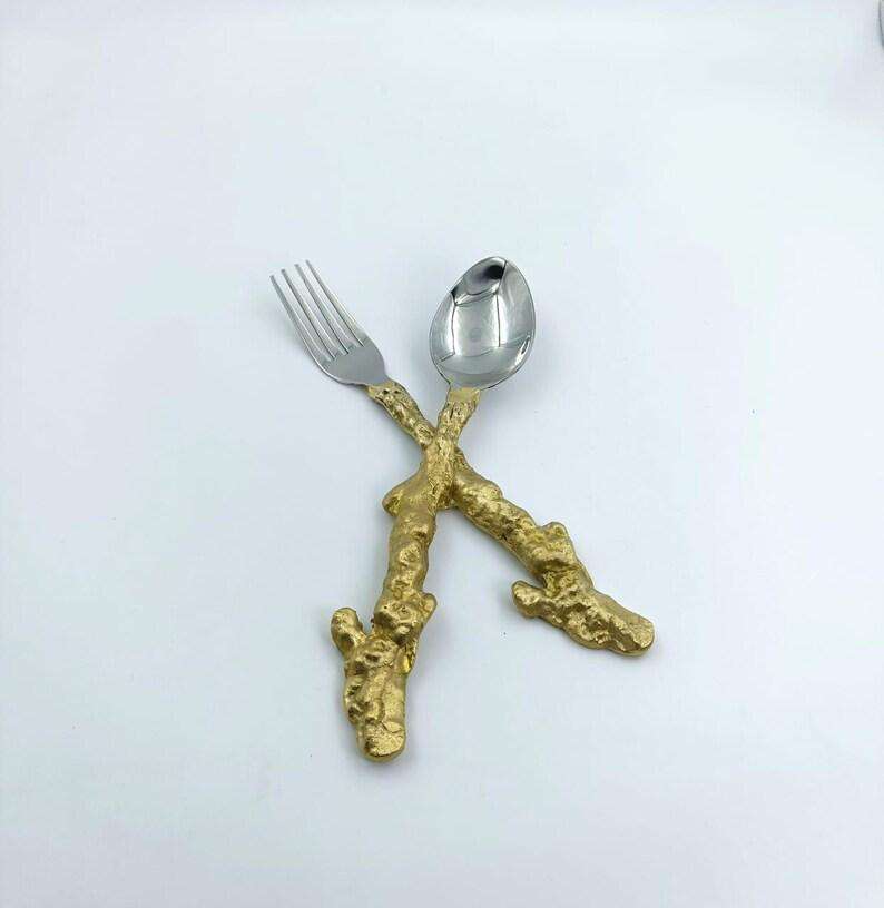 Luxury Quality Premium Brass Cutlery Spoon Set Reasonably Priced with Stainless Steel Handle Gold Color Knife Fork