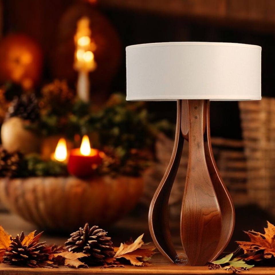 Luxury Quality Wooden Table Lamp with Fabric Shade and Handmade Finished for Decorative Piece on a Bedside Table
