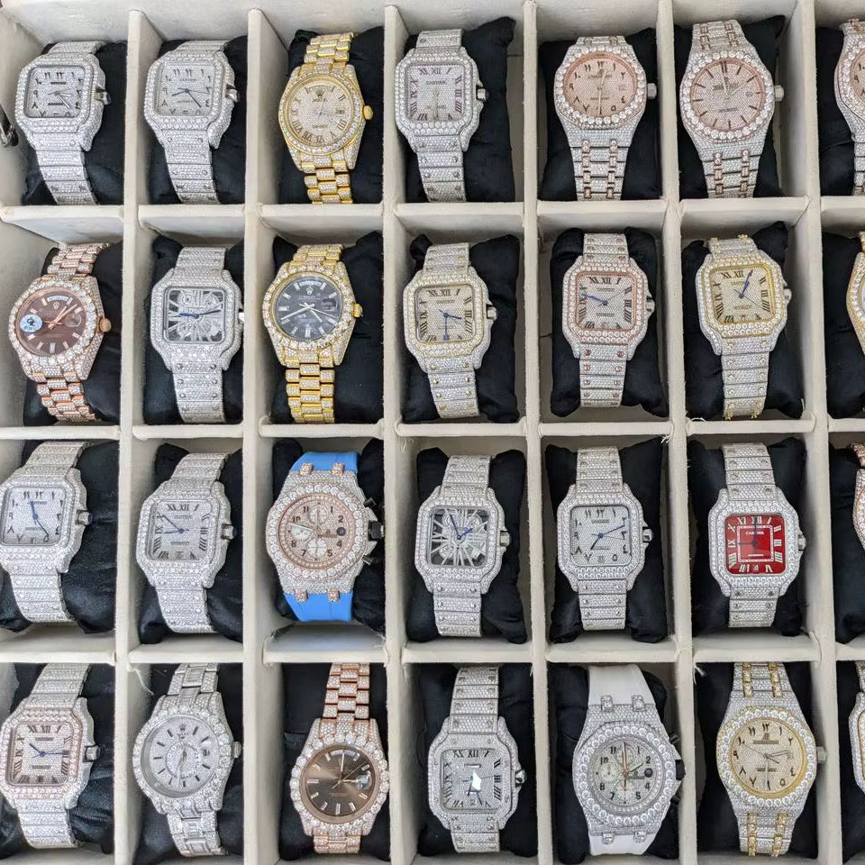Luxury Quartz Business Watch Men High Quality Sterling Silver Moissanite Lab Diamond Dial Stainless Steel Leather Antique