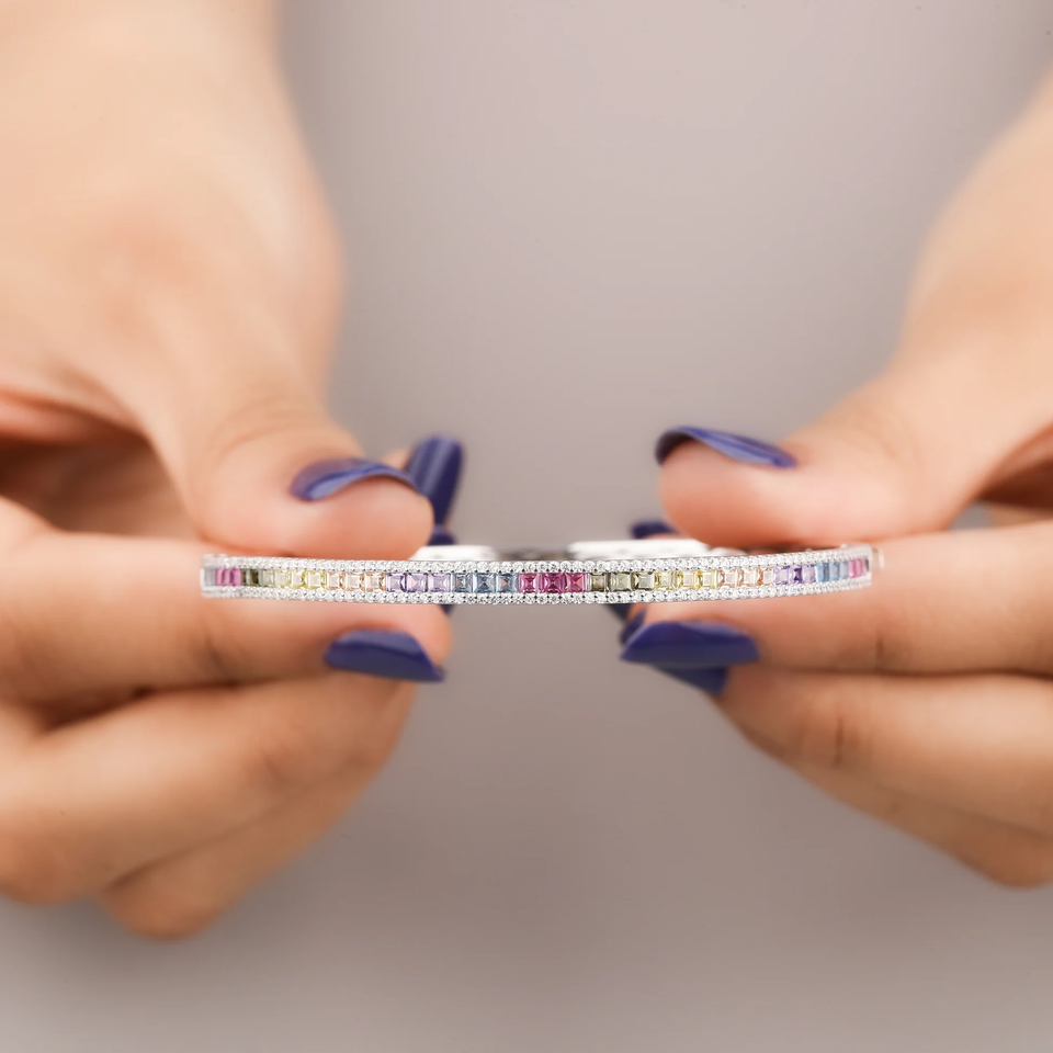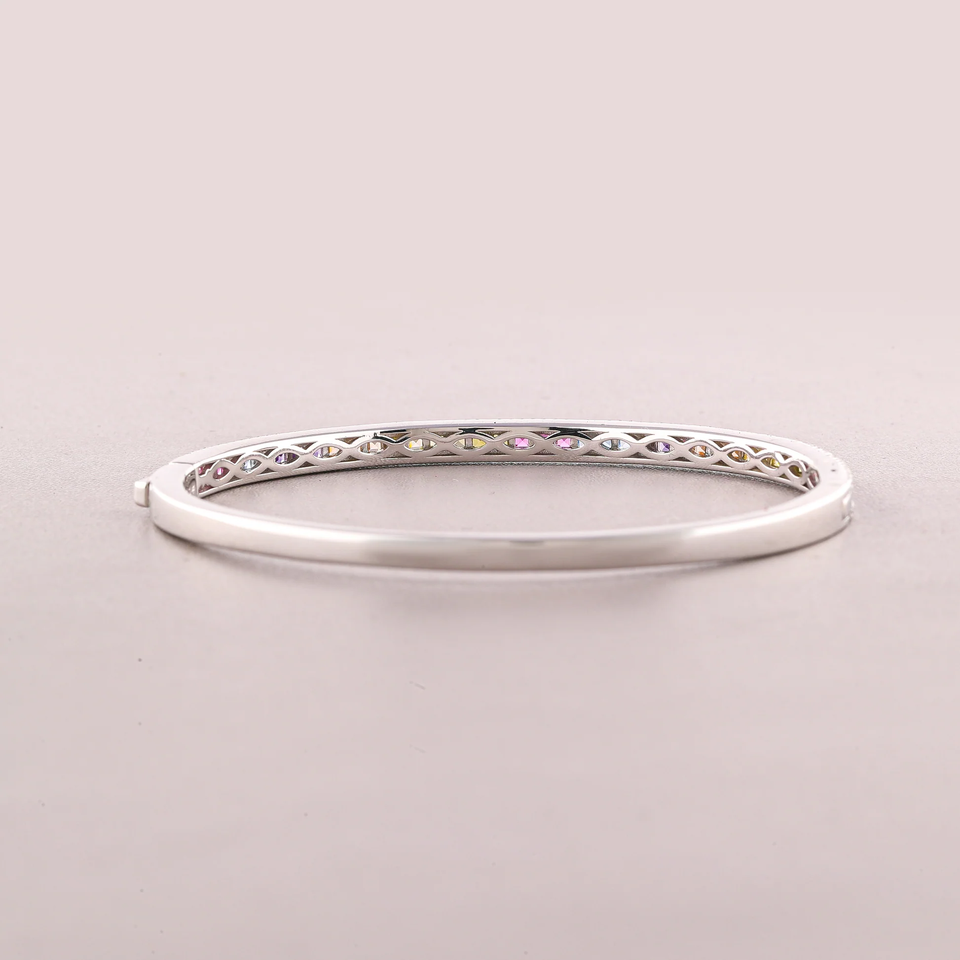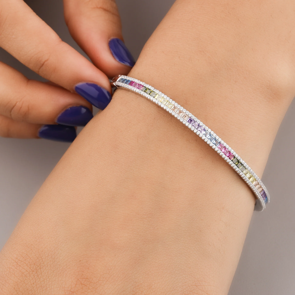 Luxury Rainbow Sapphire Bangle Bracelet Solid 925 Sterling Sier Women's Fashion Oval Bracelet Moissanite Bracelets Bangles