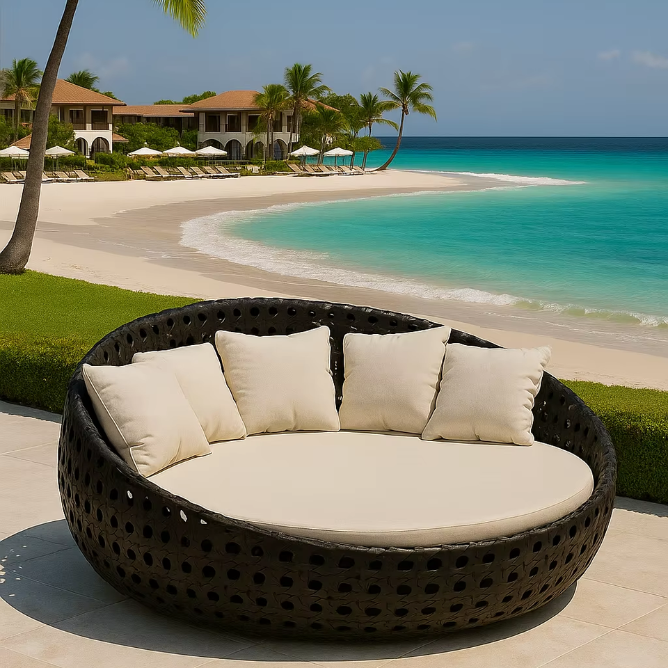 Luxury Rattan Outdoor Sun Lounger Daybed Perfect for Garden, Poolside, Beach Resort, and Leisure Relaxation Spaces
