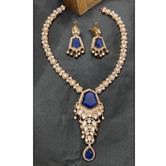 Luxury Real Moissanite Gold Plated Necklace Set With Earrings Weddings Anniversaries Engagements Wear Collection For Women