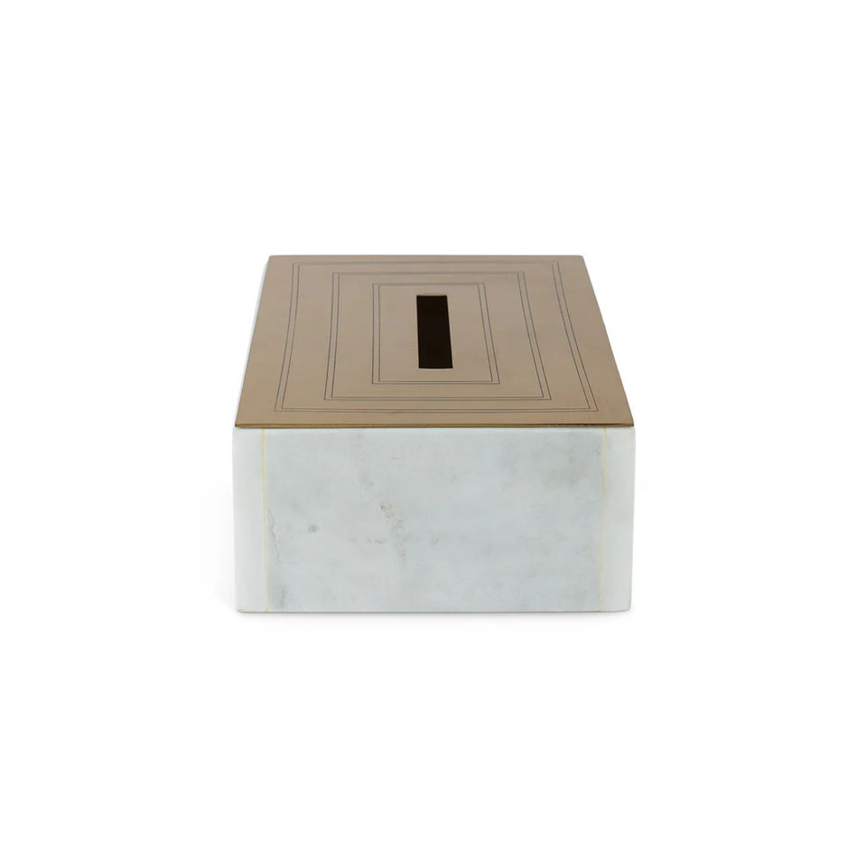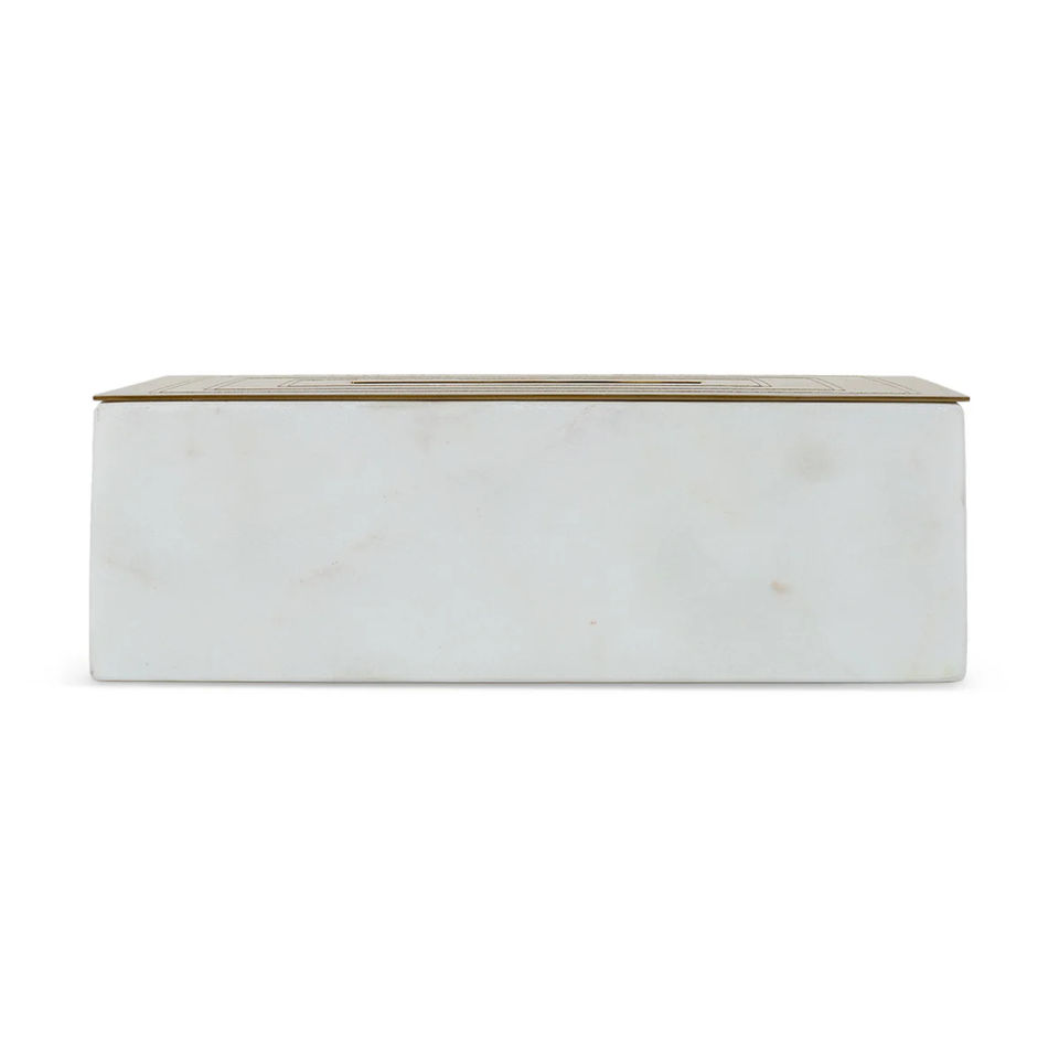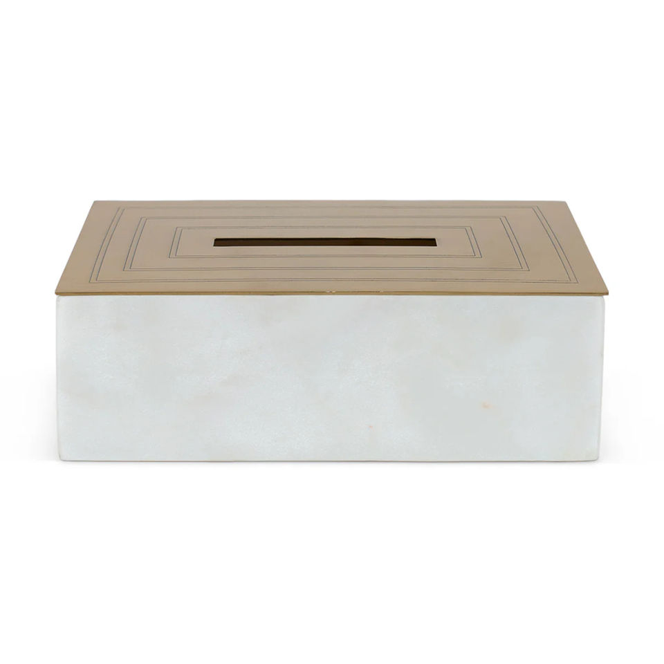 Luxury Rectangular Marble and Brass Tissue Box Cover Elegant Napkin Holder Decorative Tissue Case for Bathroom Living Room