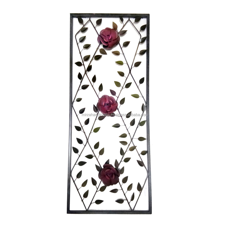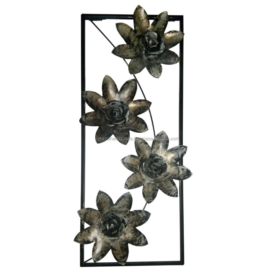 Luxury Rectangular Shape Hanging Framed Floral Gold Decorative Wall Art Framed Iron