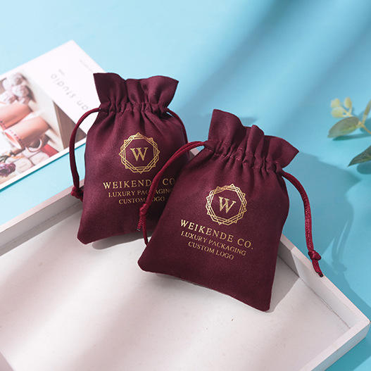 Luxury Recyclable Jewelry Pouches with Custom Logo Suede Velvet Customizable Size Small Drawstring Bag