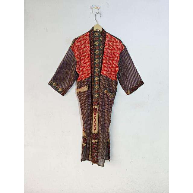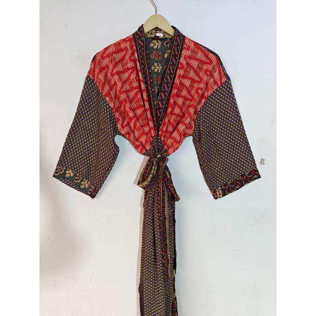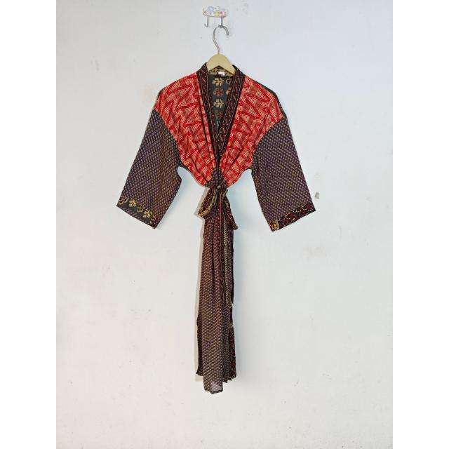 Luxury Recycled Silk Sari Kimono Robe for Women Indian Style Open Bathrobe Sleepwear Night Dress Thermal Summer Kimono for Her