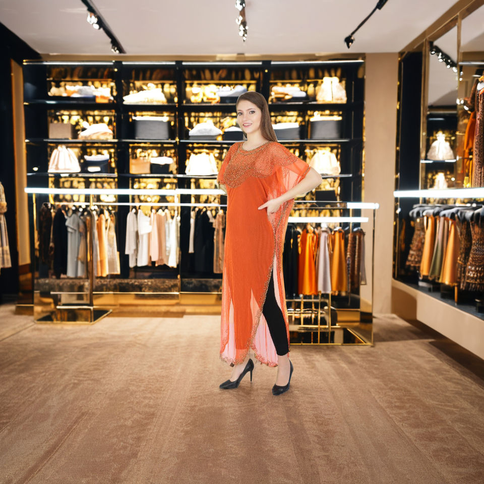 Luxury High-Profile Style Red Carpet Poncho Shrug Top Dress Straight Slit Beaded Work Free Size for Vacation Beach Party Mix