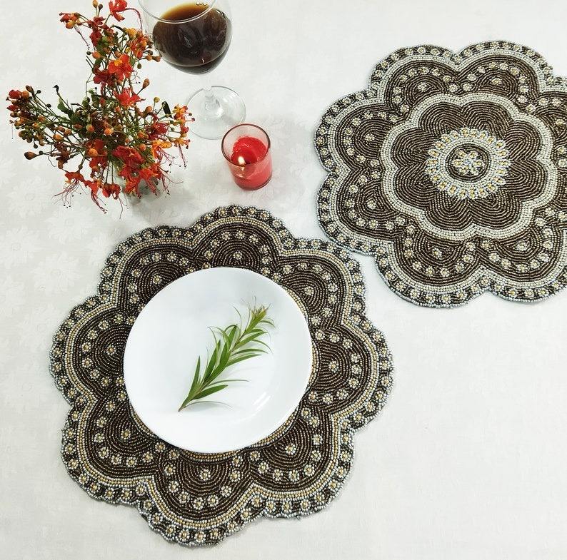 Luxury Red Embroidery Beaded Placemats Eco-Friendly Waterproof Wedding Dining Table Decor Handmade Customizable India