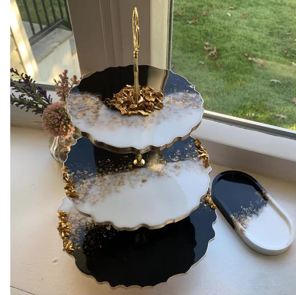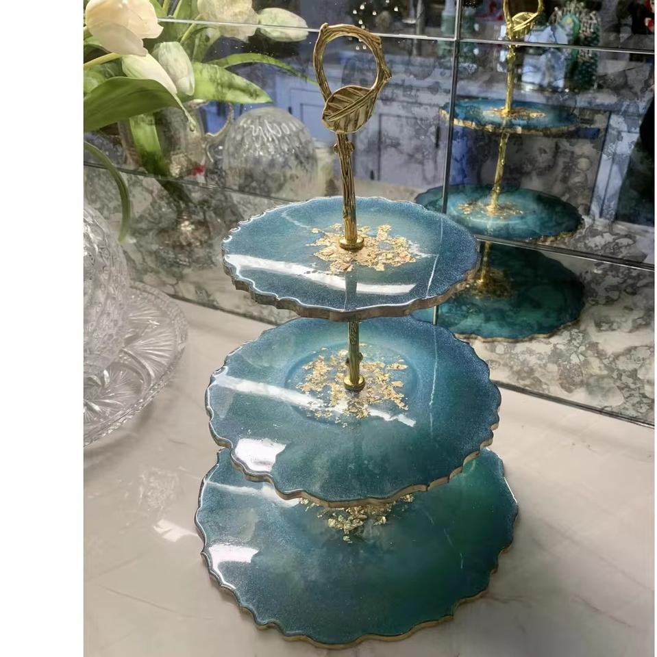 Luxury Resin Cake Stand with Embedded Agate for Stylish Dessert Serving