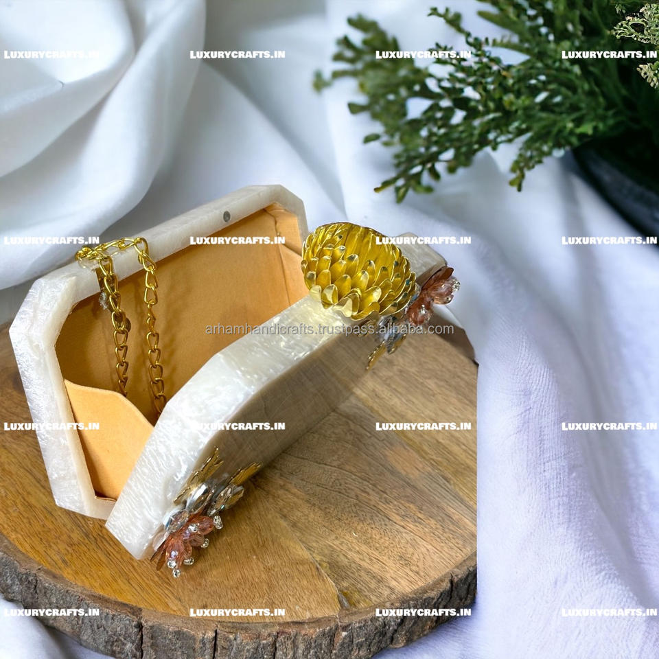 Luxury Resin Clutch Purses With Knob Beautiful Gifts Looking Handbags Exports at Reasonable Price by LUXURY CRAFTS