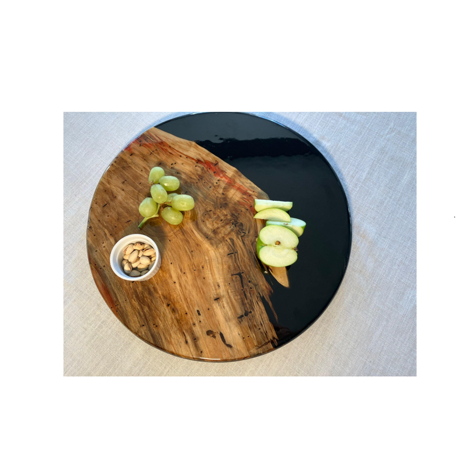 Luxury Resin and wood lazy susan Food Display Lazy Susan 30cm Dia Wood Plate Rotating Table Natural Edge glass Spice Rack