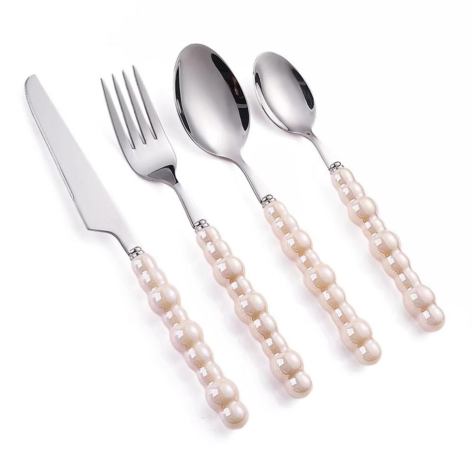 Luxury Restaurant Creative Stainless Steel Colourful Pearl Handle Spoon Fork Knife High End Cutlery Set