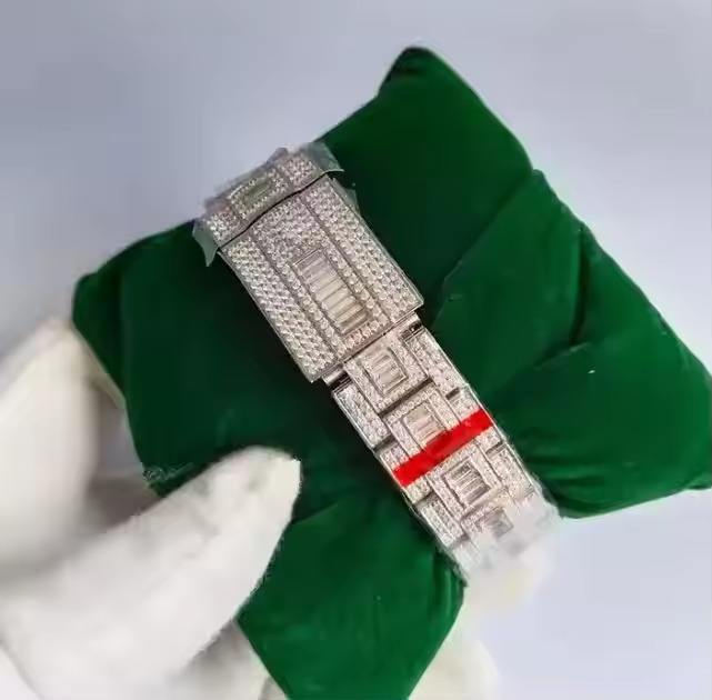 Luxury Retro Classic Automatic Mechanical Men's Watch Full Diamond VVS Moissanite with Arabic Dial & Emerald Detailing