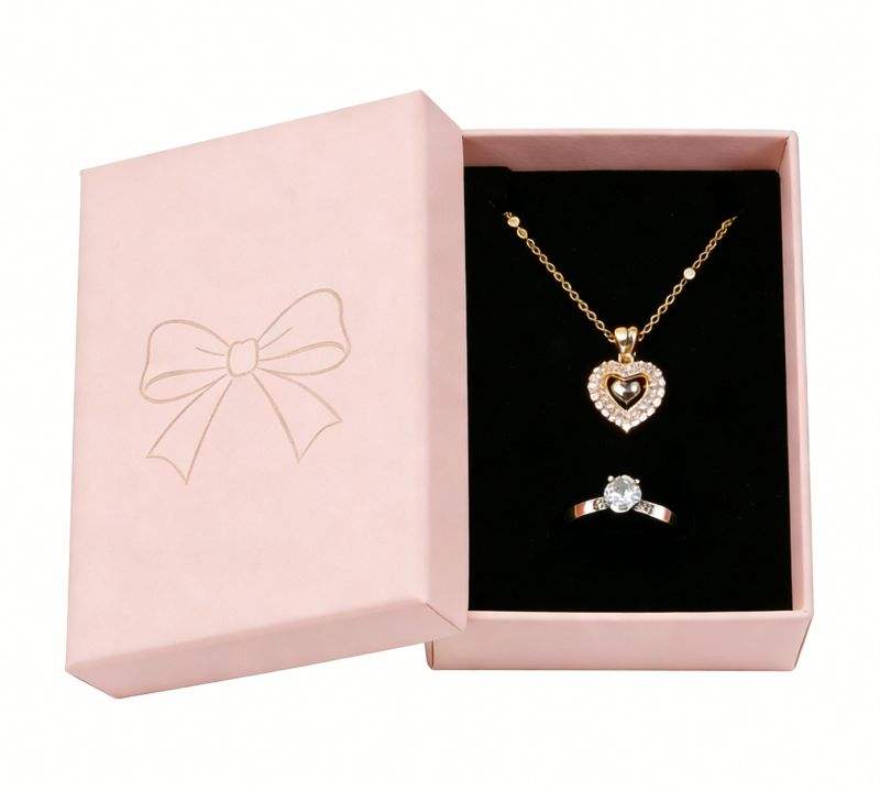 Luxury Rigid Gift Box with Base Lid for Romantic Jewelry Display Gold Hot Stamping Earrings & Necklaces Printing Paper Packaging