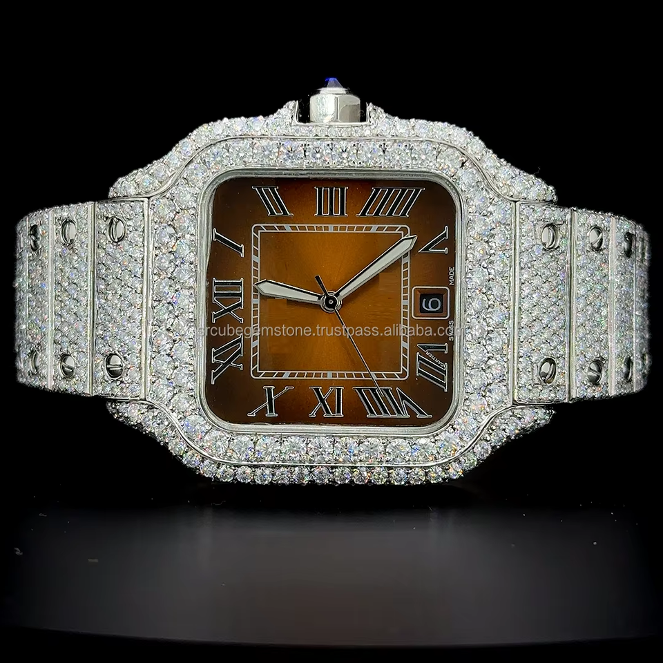 Luxury Roman Dial Fully Iced Out Moissanite Watch - VVS Moissanite Men's Dress Watch - Custom Watch Manufacturer