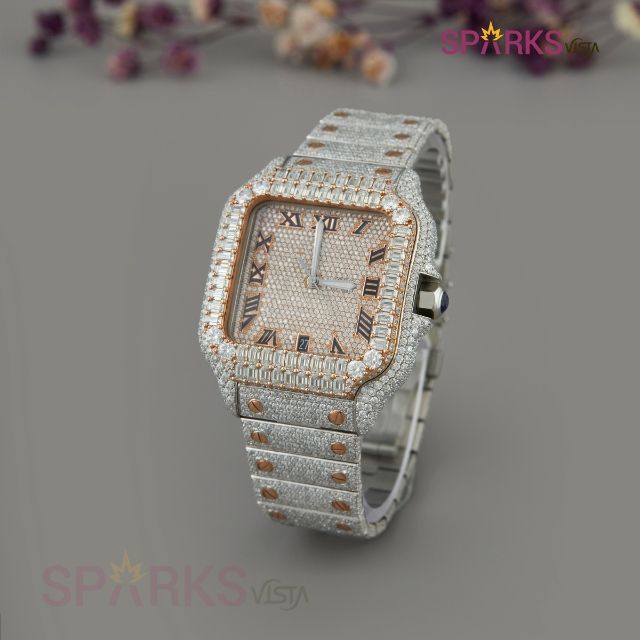 Luxury Mens Mechanical Diamond Watch Roman Numerals Rose Gold Accents Fully Diamond Dial Eco-Friendly Limited Edition Fashion